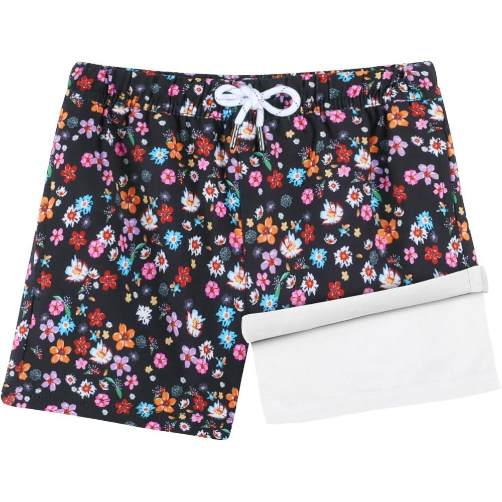 imageBRISIRA Boys Swim Trunks Bathing Suit Compression Boxer Brief Liner AntiChafe Swimsuit Swim Shorts Toddler Kids Youth TeenBlack Flowers