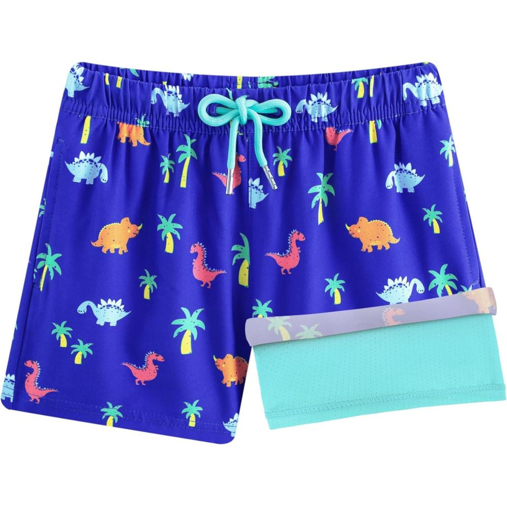 imageBRISIRA Boys Swim Trunks with Compression Liner Bathing Suit Kids AntiChafe Quick Dry Swimsuit Swim Shorts Youth Teens 516YBlue Dinosaurcoconuttree