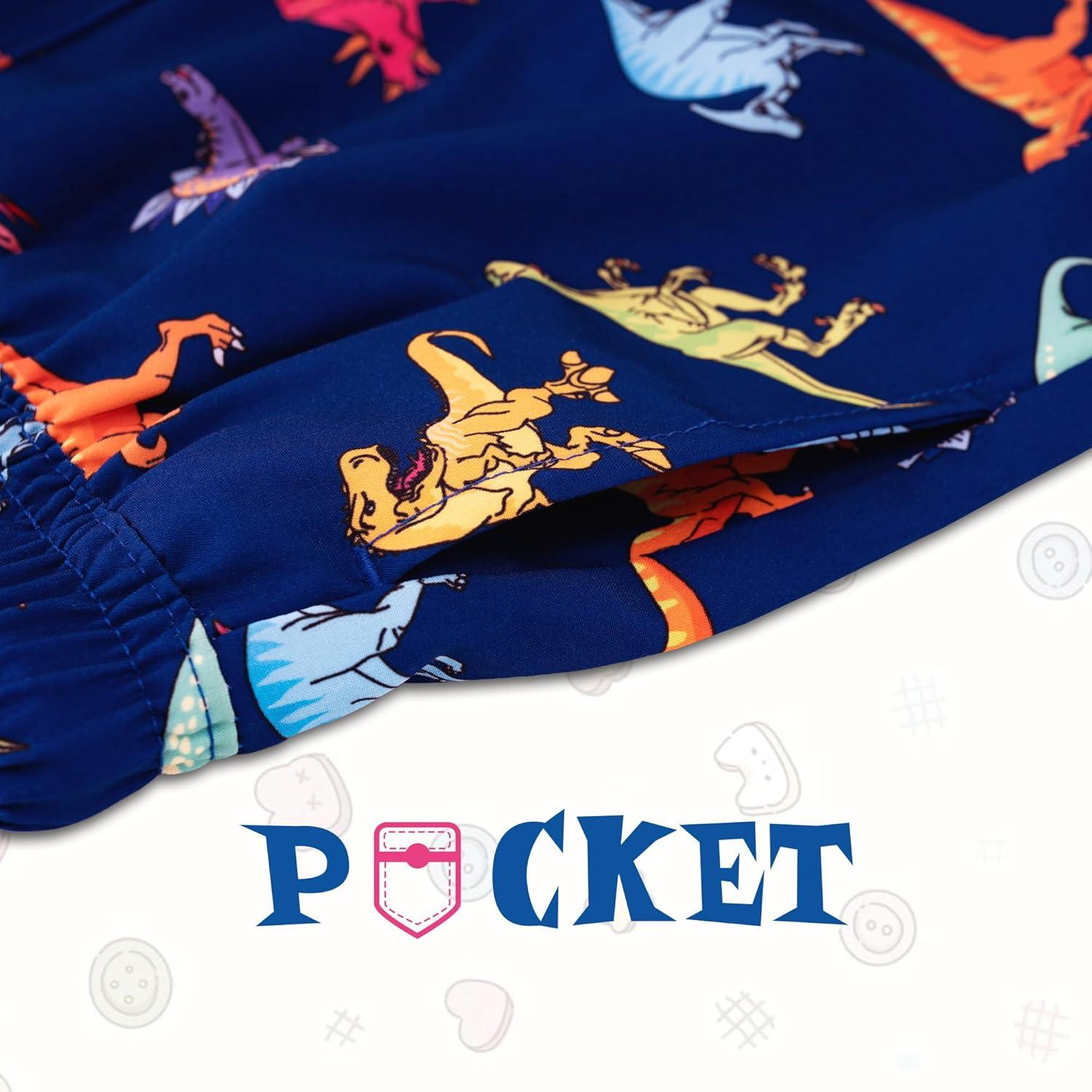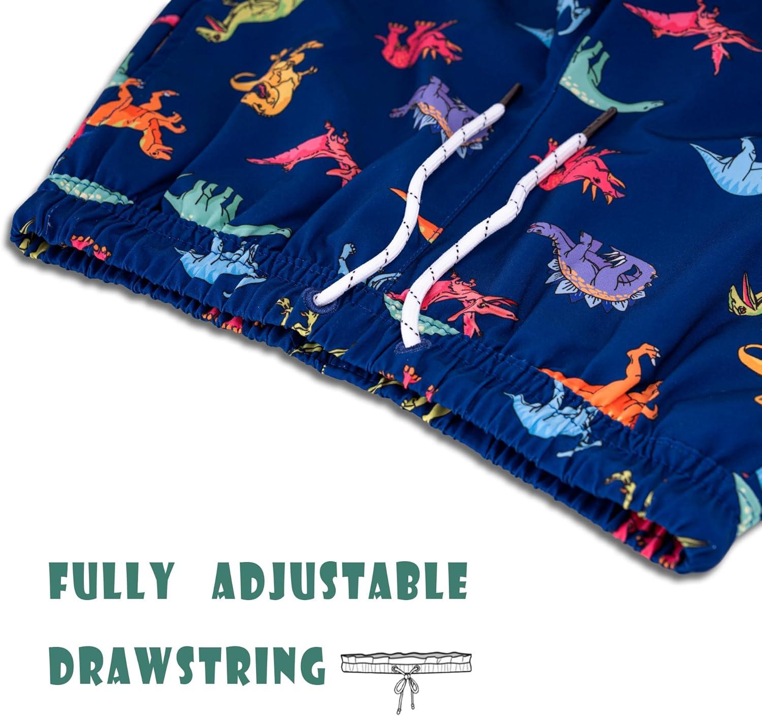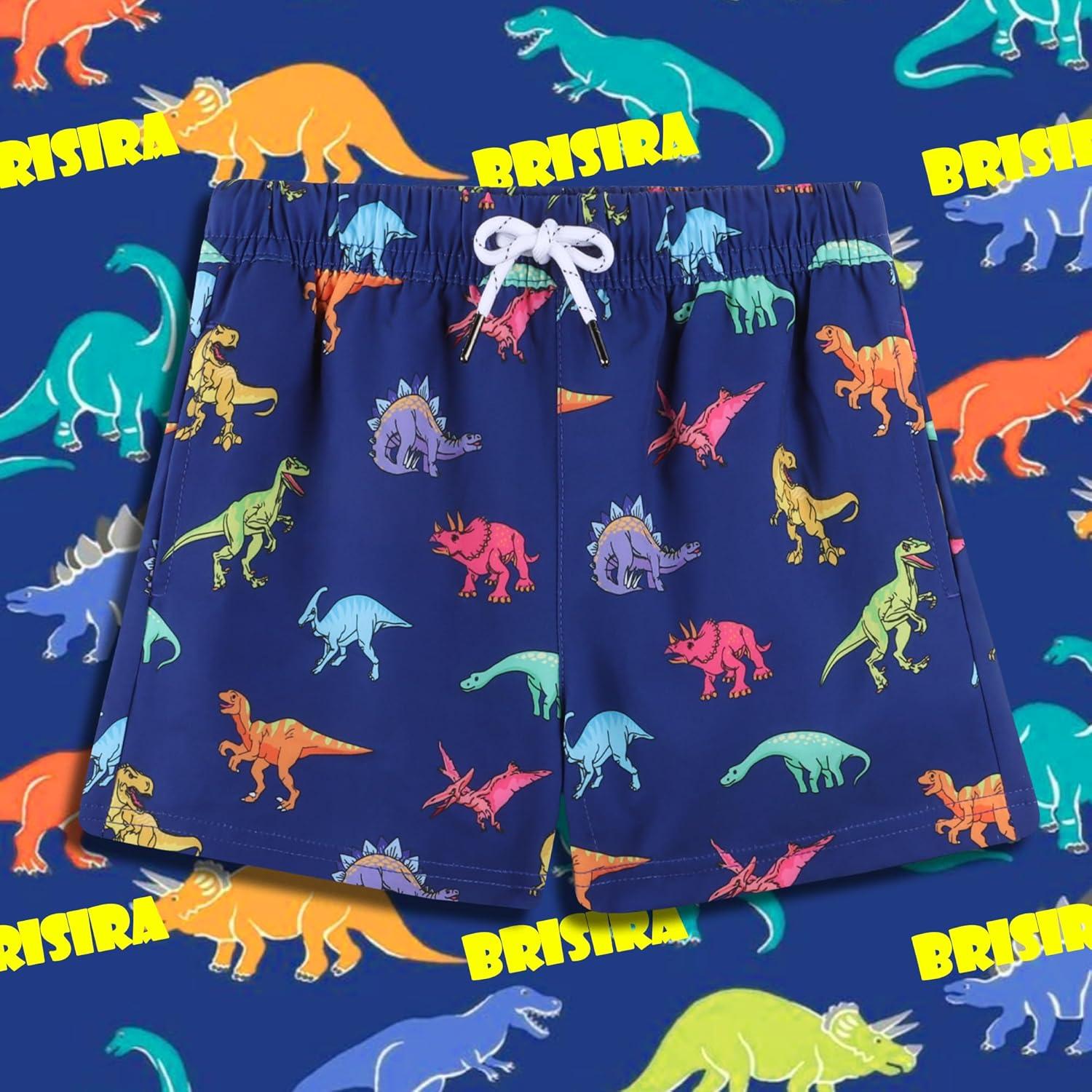 BRISIRA Boys Swim Trunks with Compression Liner Youth Bathing Suit Quick Dry Anti-Chafe Swimsuit Swim Shorts Kid Toddler Teen(Blue Dino)