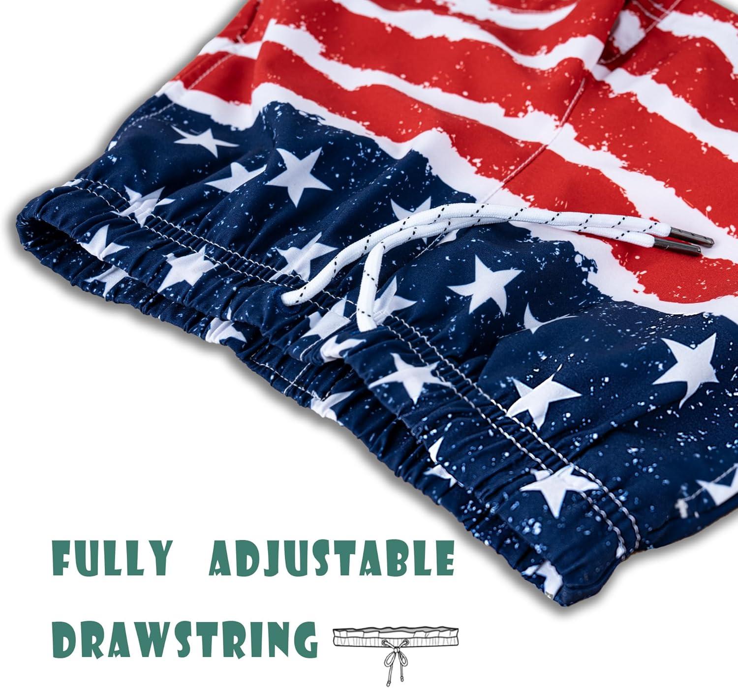 BRISIRA Boys Swim Trunks with Compression Liner Youth Bathing Suit Quick Dry Anti-Chafe Swimsuit Swim Shorts Kid Toddler Teen(Red White&blue Flag)