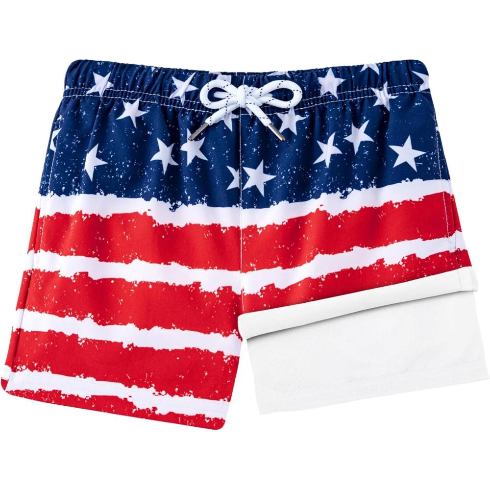 image:imageBRISIRA Boys Swim Trunks with Compression Liner Youth Bathing Suit Quick Dry AntiChafe Swimsuit Swim Shorts Kid Toddler TeenBw America Flag