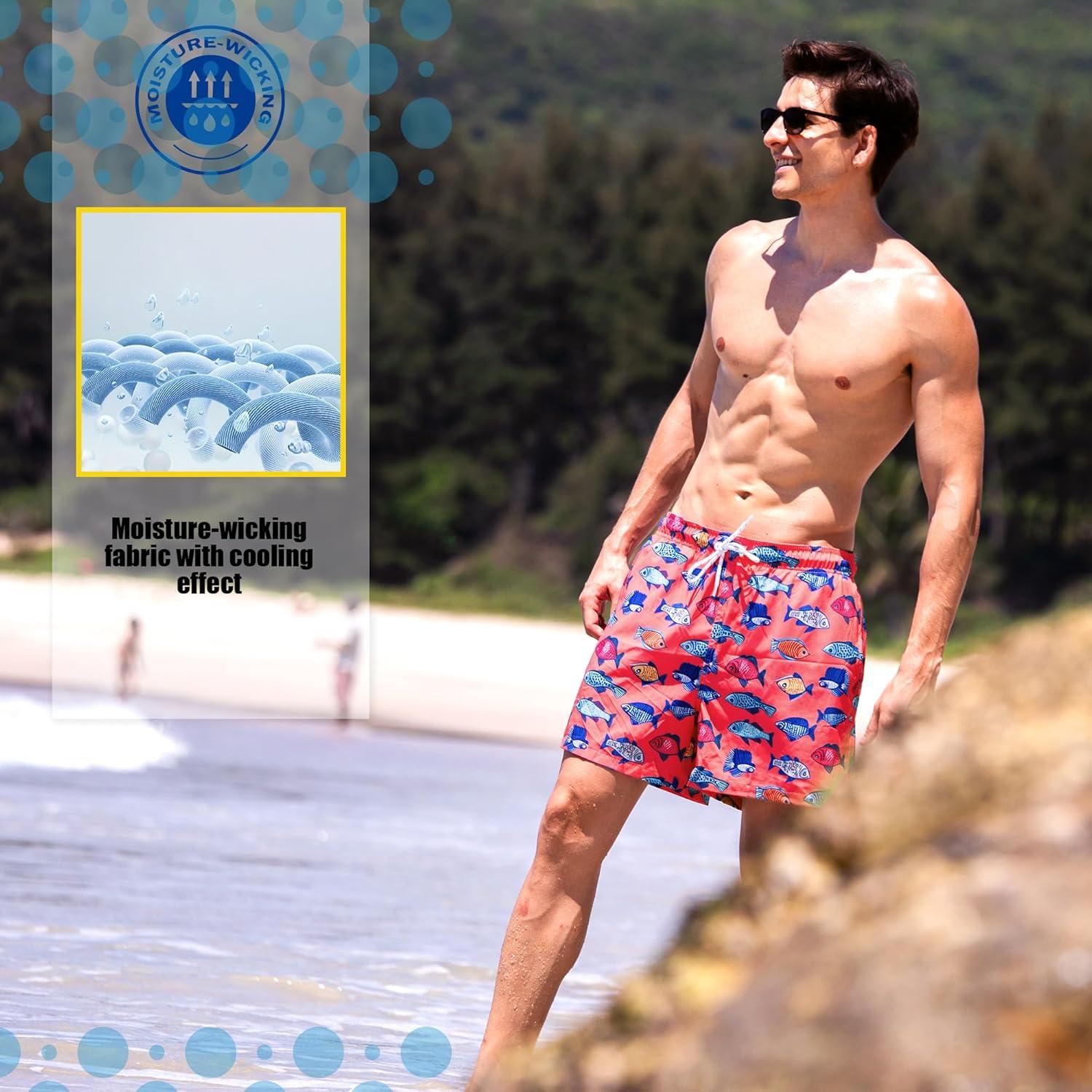 BRISIRA Men's Hawaiian Beach Shorts No Liner 5 Inch Lightweight Quick Dry Swim Trunks with Drawstring Elastic Waist & Pocket(Pinkfish)