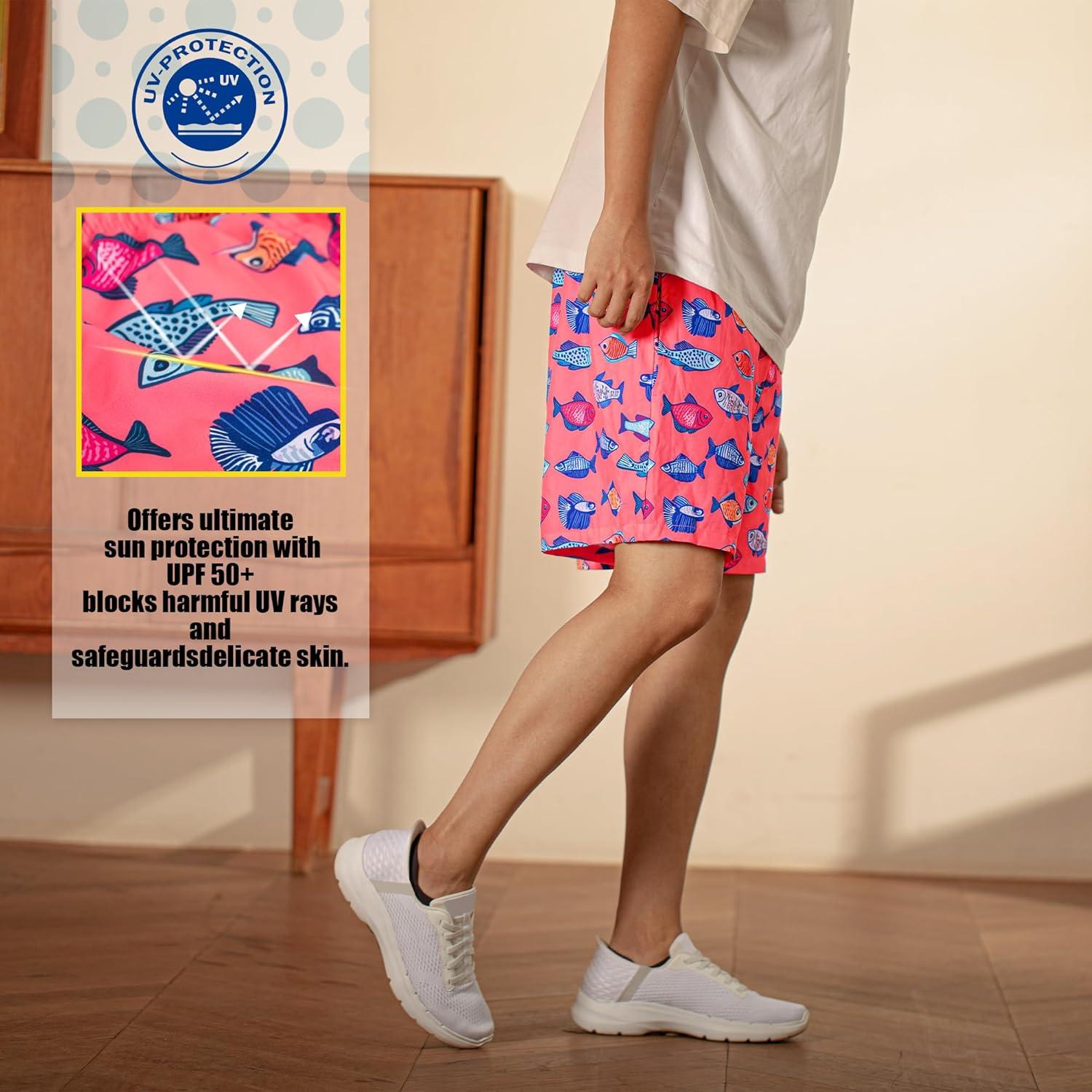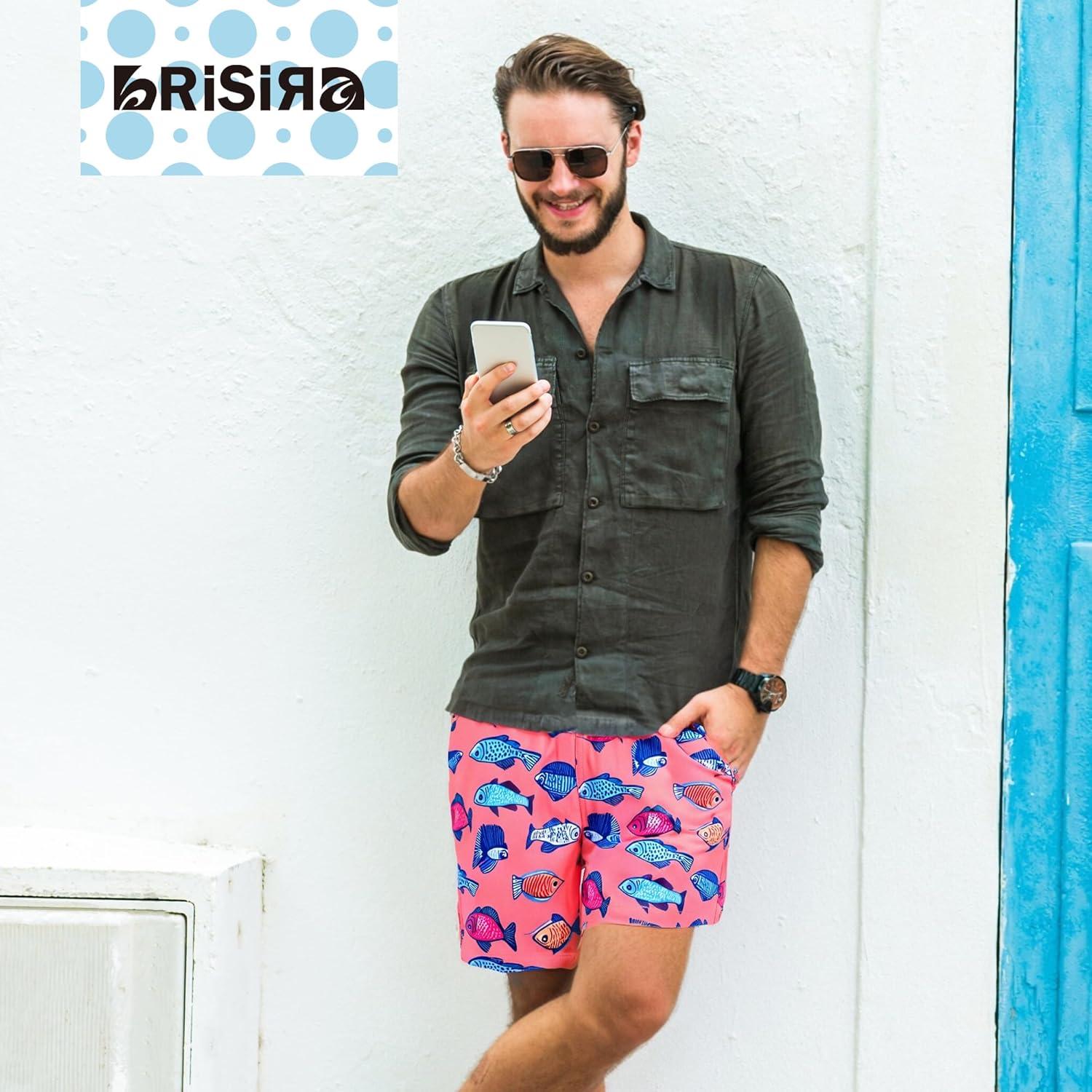BRISIRA Men’s Hawaiian Beach Shorts No Liner 5 Inch Lightweight Quick Dry Swim Trunks with Drawstring Elastic Waist & Pocket(Pinkfish)