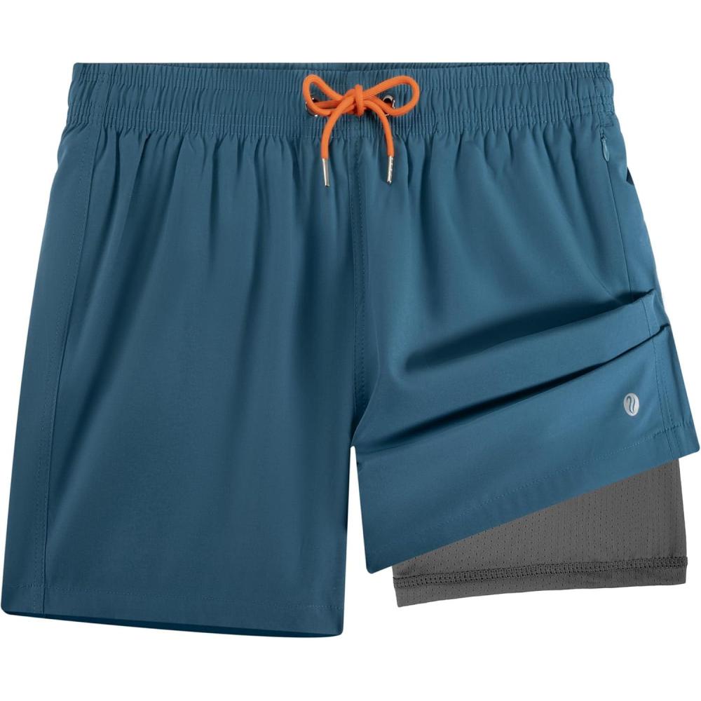 BRISIRA Mens Swim Trunks 5 Inch Compression Liner Beach Swim Shorts Bathing Suit Quick Dry 4-Way Stretch Pockets(Lake Blue)