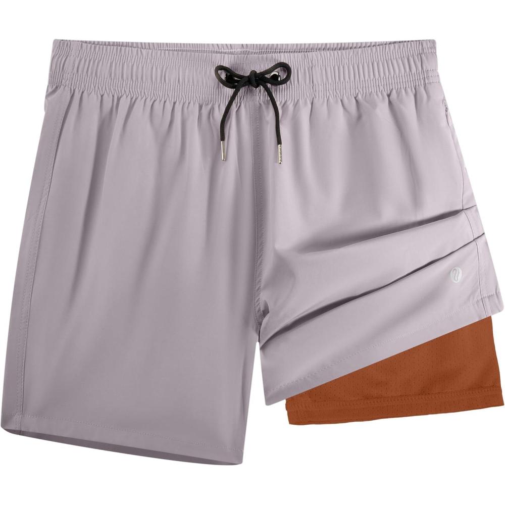 BRISIRA Mens Swim Trunks 5 Inch Compression Liner Beach Swim Shorts Bathing Suit Quick Dry 4-Way Stretch Pockets(Light Grey)