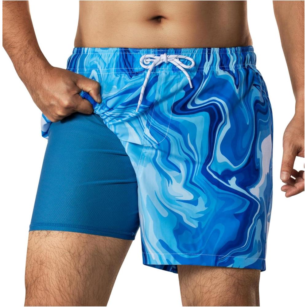 BRISIRA Mens Swim Trunks 5 Inch Quick Dry Bathing Suit with Compression Liner Beach Swimsuit Board Shorts Pockets(Blue Paint Flow)