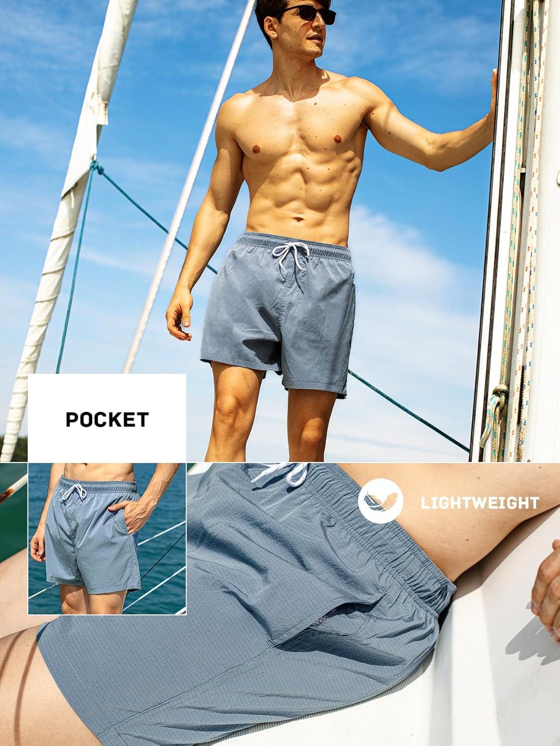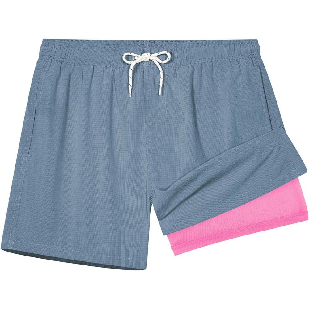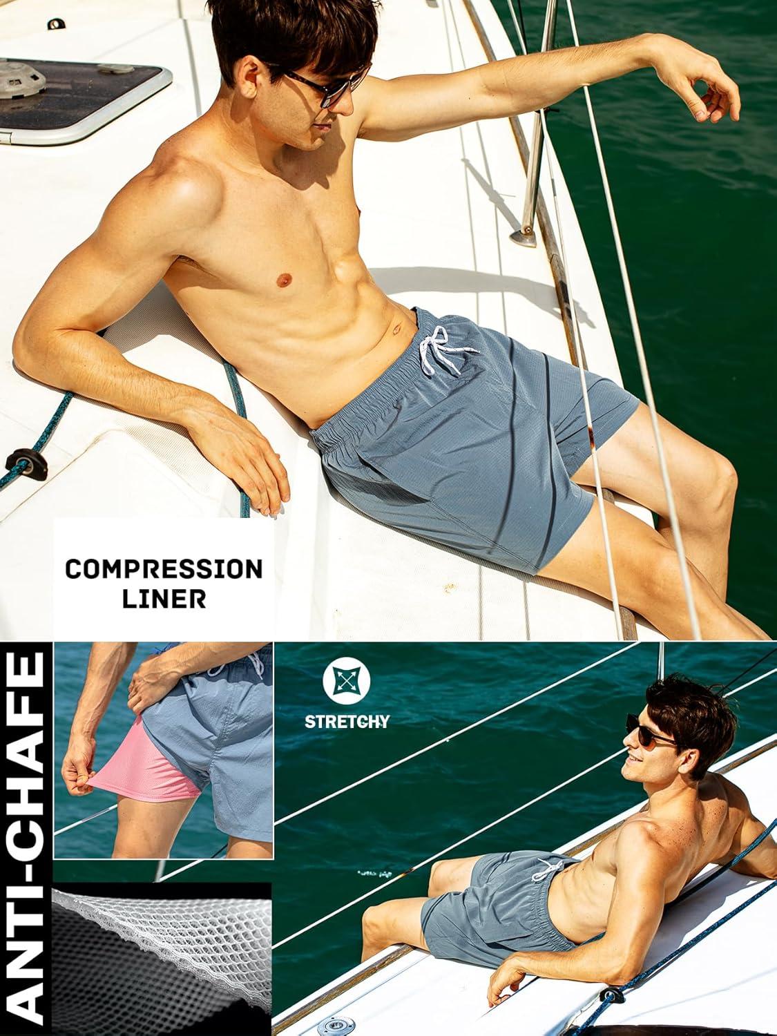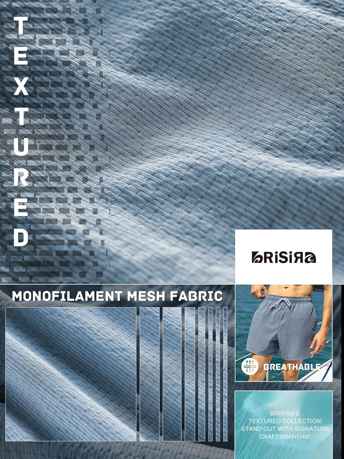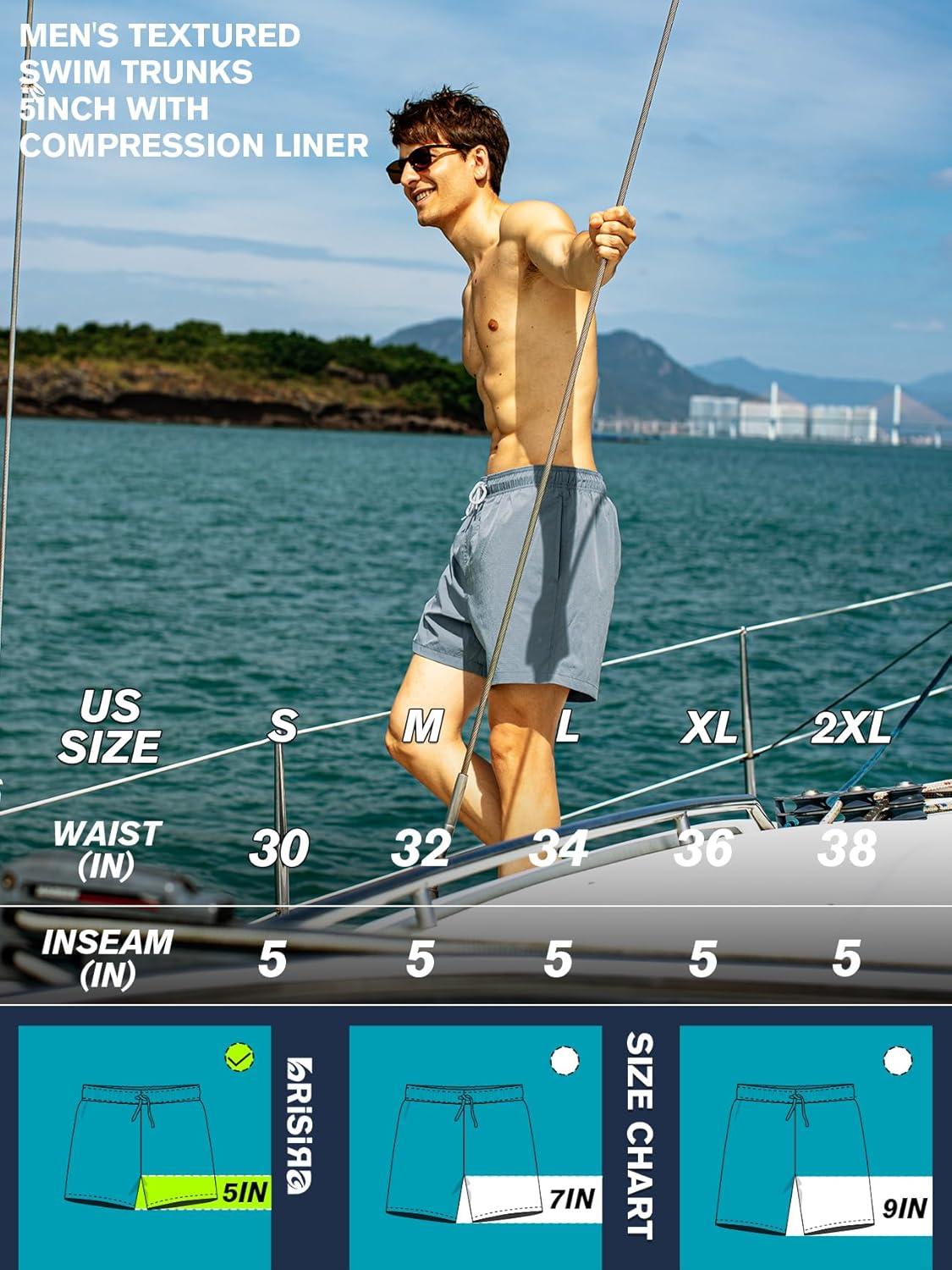 BRISIRA Mens Swim Trunks 5″ Textured Compression Liner Quick Dry Bathing Suit Breathable Swimsuit Board Shorts Lightweight(Dusty Blue)