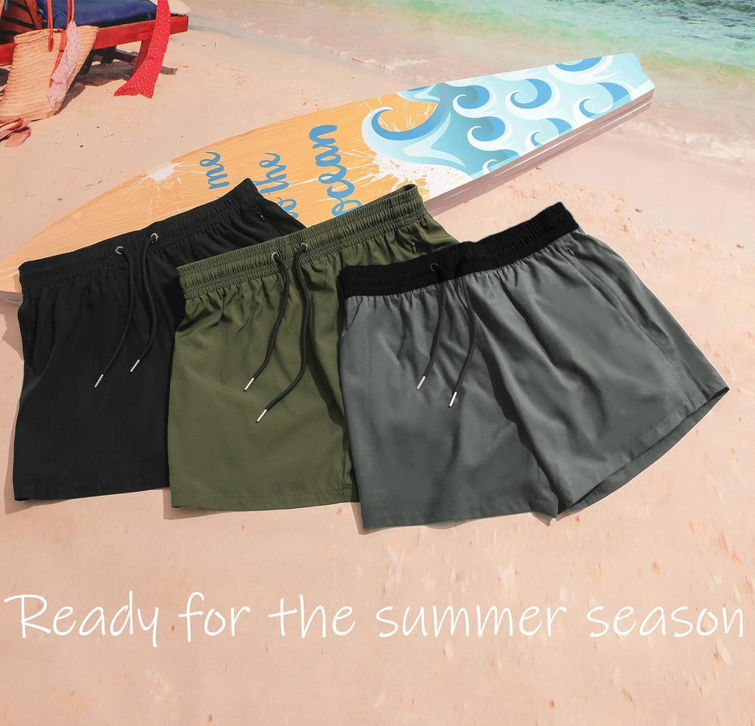 imageBRISIRA Mens Swim Trunks Swim Shorts Quick Dry 5 inch Inseam Beach Shorts with Compression Liner and Zipper PocketGreen