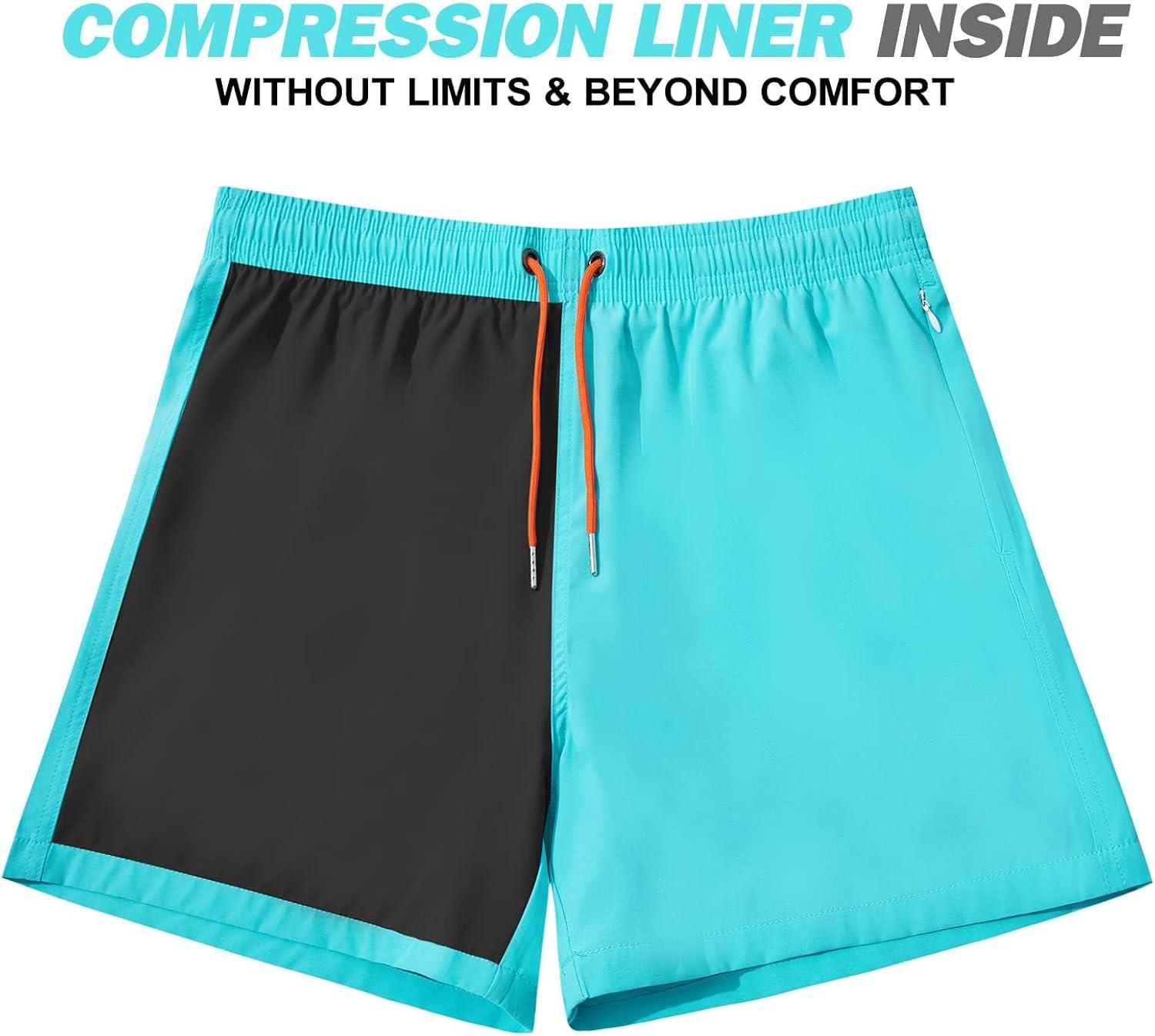 BRISIRA Mens Swim Trunks Swim Shorts Quick Dry 5 inch Inseam Beach Shorts with Compression Liner and Zipper Pocket(Lightblue)