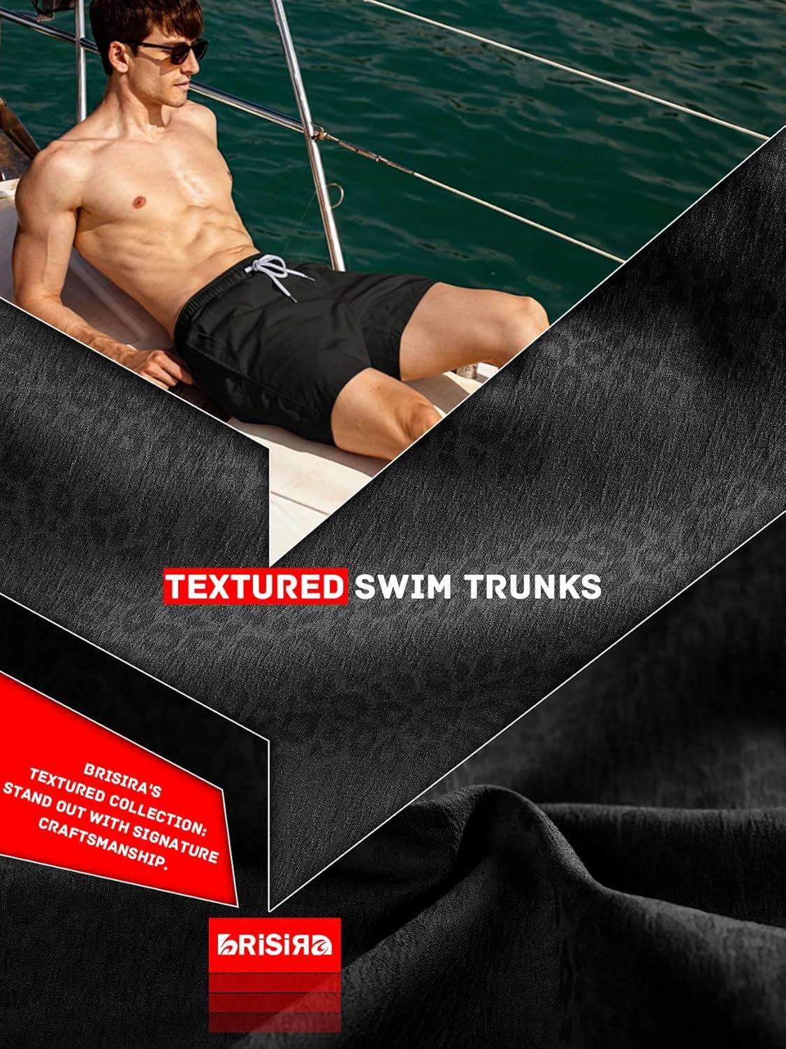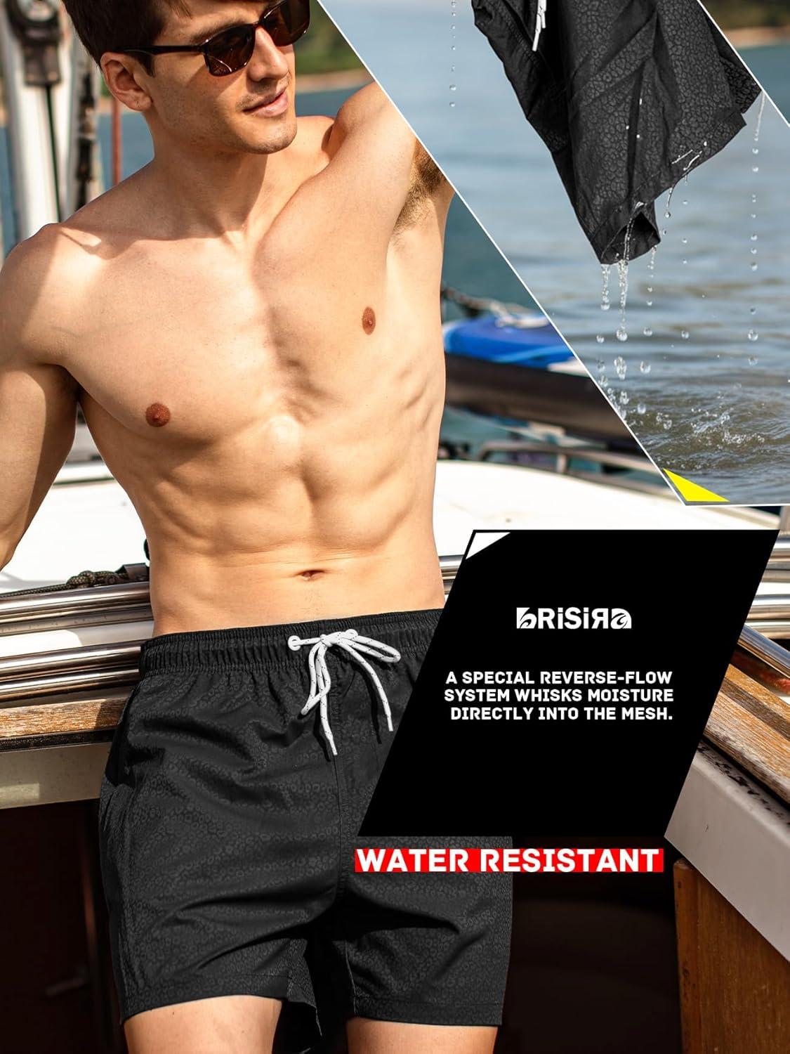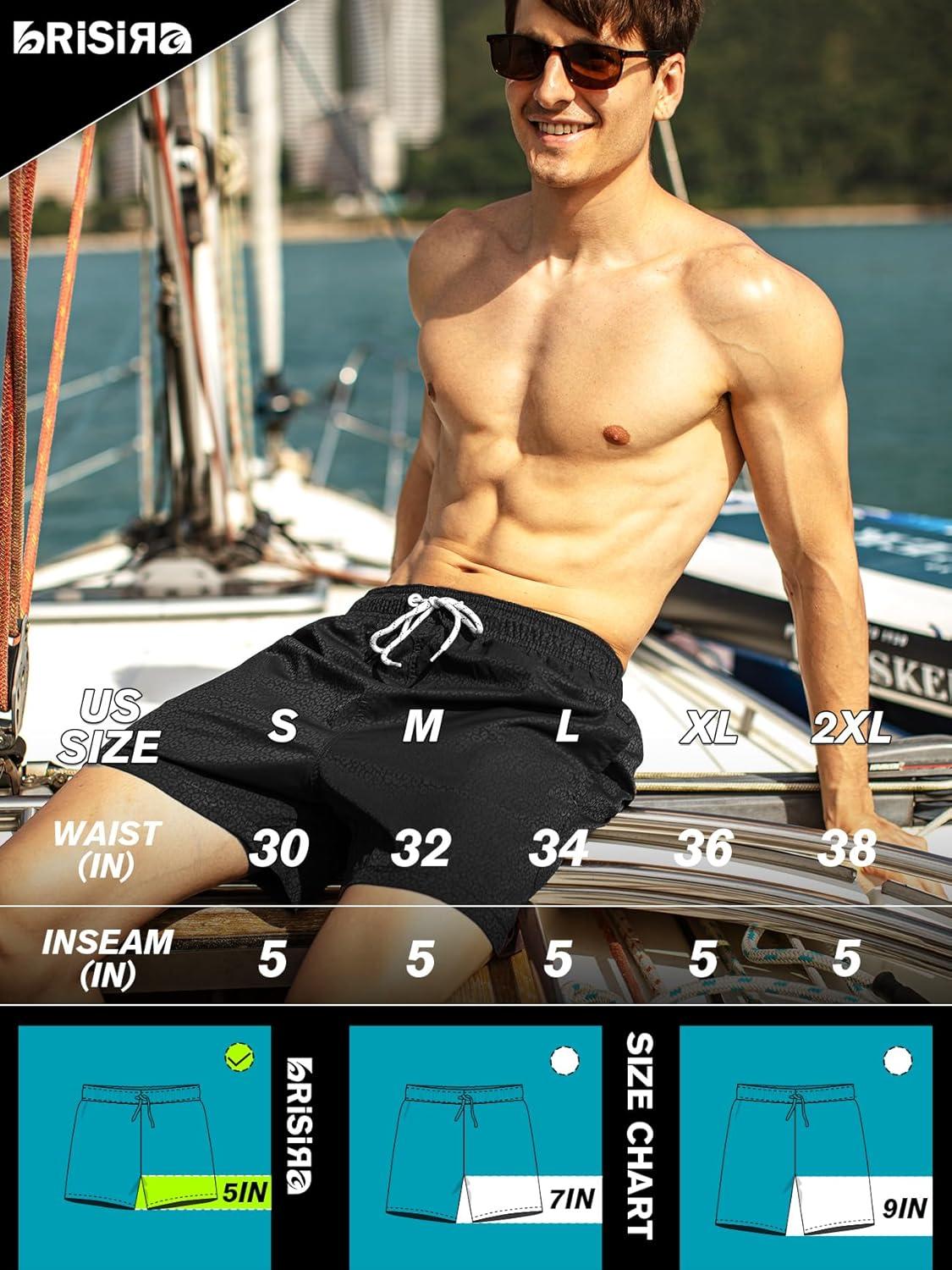 BRISIRA Mens Swim Trunks Swim Shorts Quick Dry 5 inch Inseam Beach Shorts with Compression Liner and Zipper Pocket(Black)
