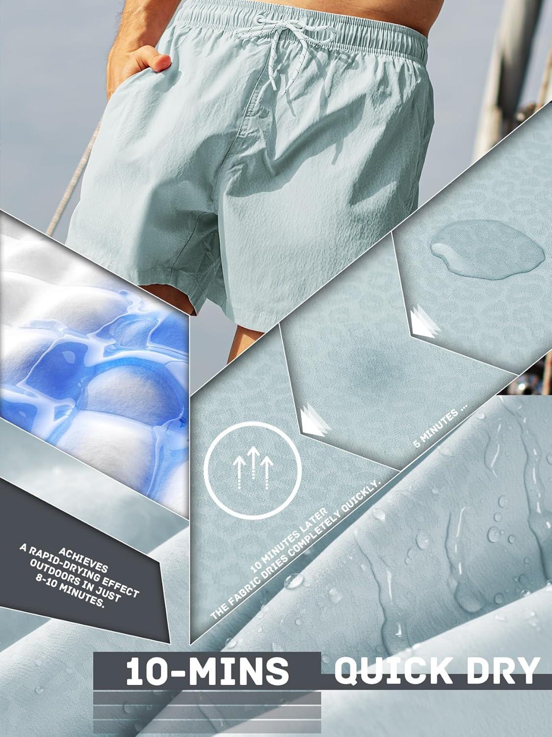 imageBRISIRA Mens Swim Trunks with Compression Liner 5quot Leopard Print Beach Shorts Quick Dry Board Shorts WaterResistant SwimsuitLightblue Leopard